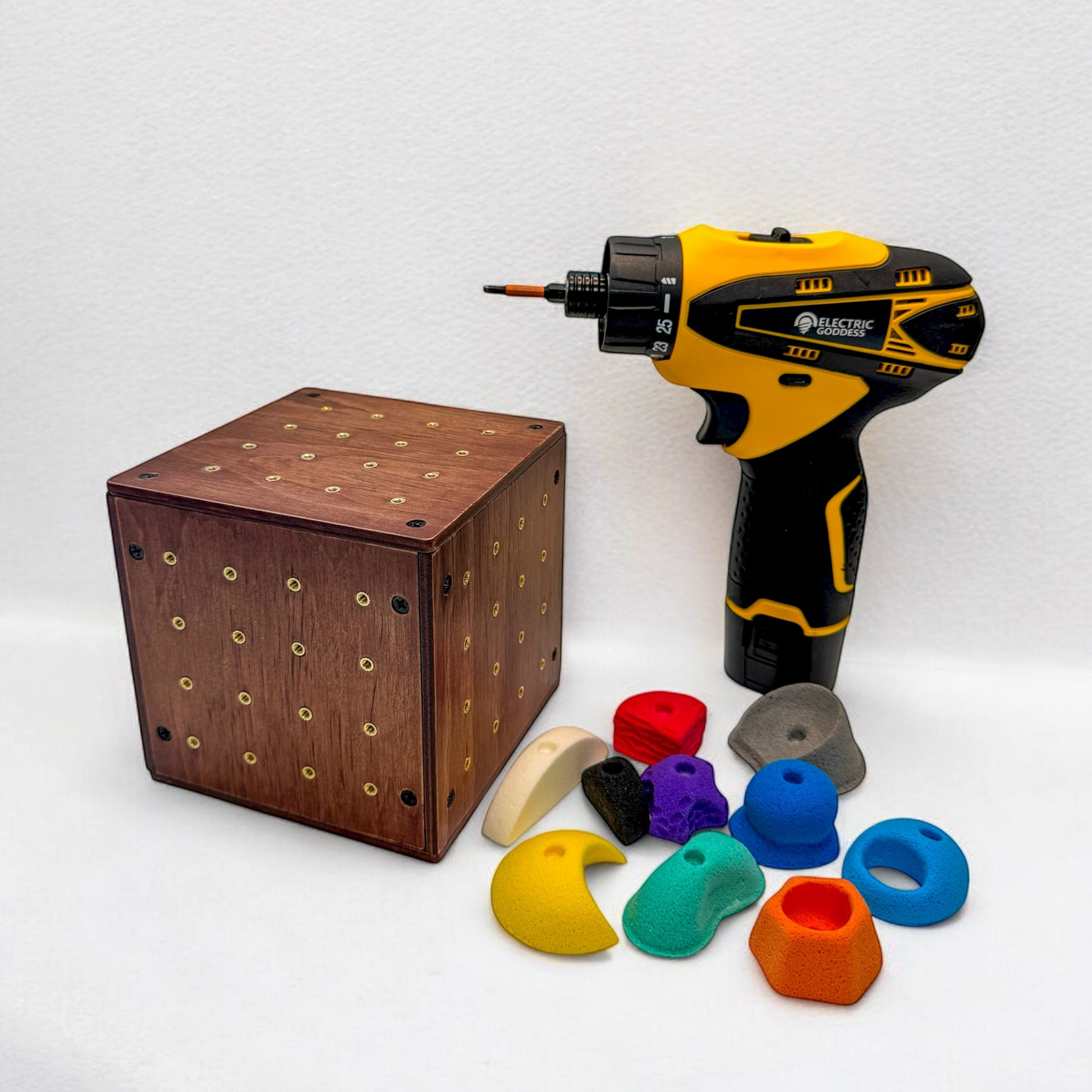 • Each Boulder Cube kit includes 10 unique holds, each in a different color.